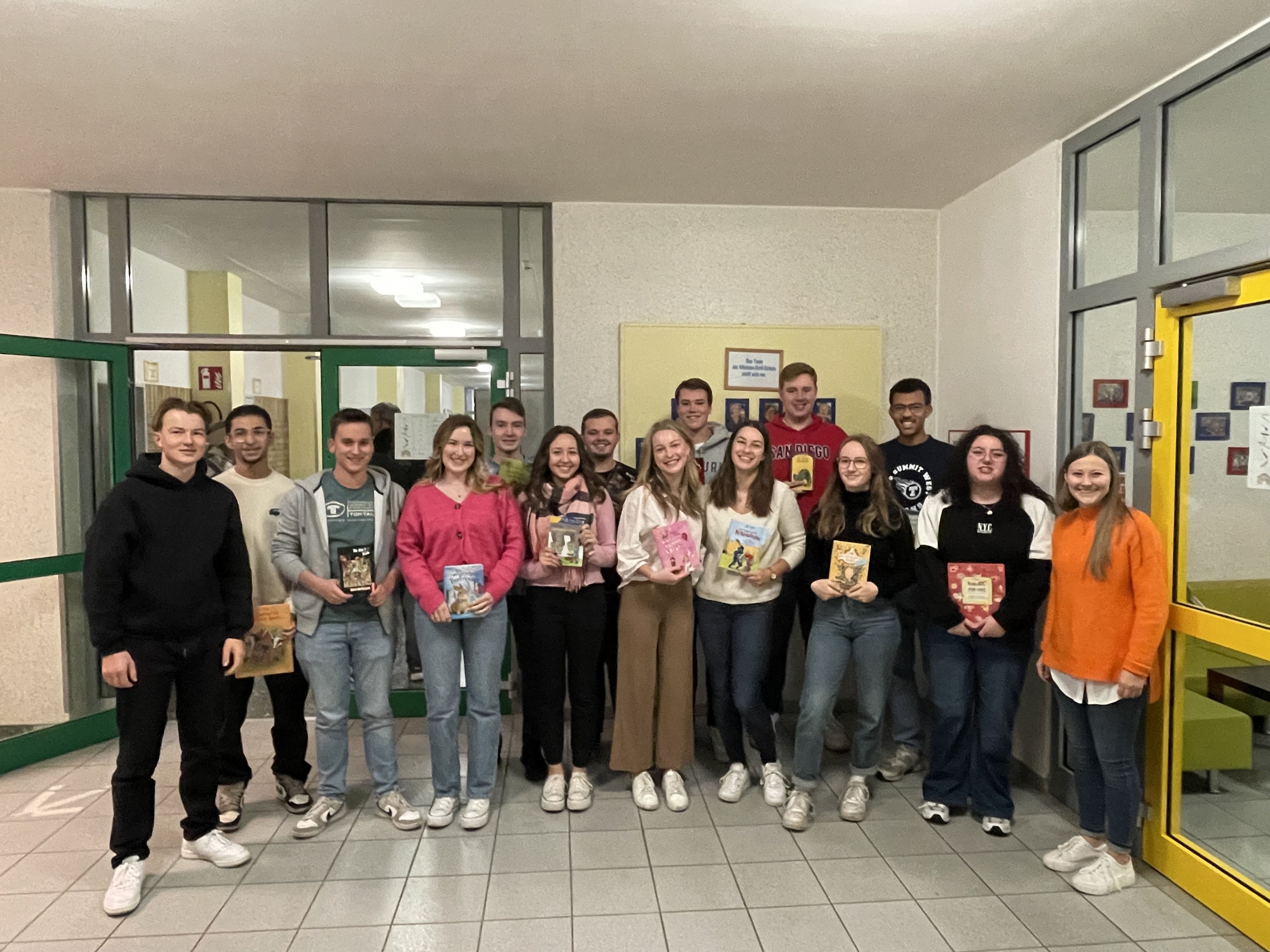 Anlässlich des bundesweiten Vorlesetags am 17. November haben 14 Schülerinnen und Schüler unserer Q2 die Nikolaus-Groß-Schule in Bösperde besucht. Die insgesamt 13 Klassen der Grundschule freuten sich vorab schon riesig auf die „Großen“. Der bundesweite Vorlesetag hat zum Ziel, ein Zeichen für mehr Leseförderung zu setzen und auf die Bedeutung des Lesens für die Entwicklung von Kindern aufmerksam zu machen. Das diesjährige Motto "Vorlesen verbindet" wollten wir dabei gern mit einer gemeinsamen Aktion beider Schulen umsetzen.